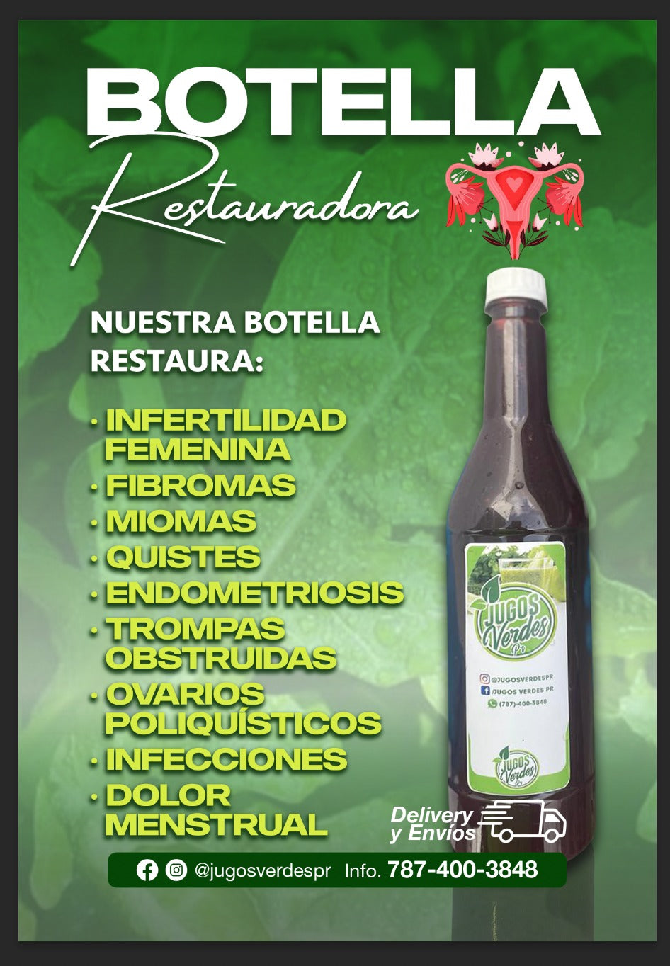 💚 Nuestro producto estrella, la Botella Restauradora, ha marcado la diferencia en la vida de muchas mujeres, con testimonios de embarazos en Puerto Rico y fuera de la isla, además de beneficios para la fertilidad, el balance hormonal y la salud femenina.